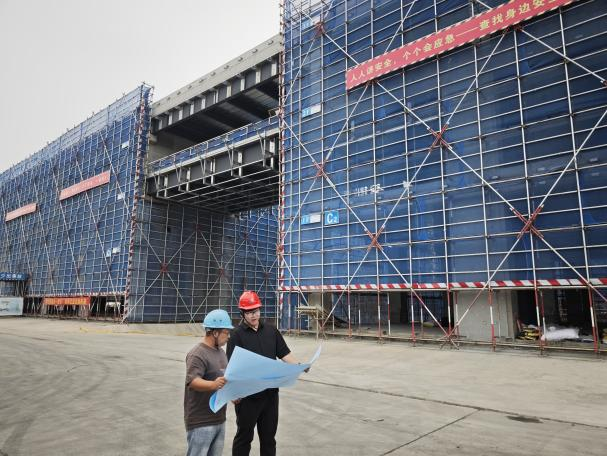 我叫丁健,是工程部的一名职员。我像往常一样戴上安全帽,走进了这片熟悉而又繁忙的工地。脚下是坚实的土地,眼前是林立的钢筋水泥,耳边是机器隐约的轰鸣。这是我在南京智慧康养创新园项目上度过的第三个国庆节。我们项目C区已经完成主体验收,目前正处在幕墙安装的关键阶段,工期、质量、安全,哪一样都松懈不得。就像一艘航行中的船,我不能在关键航段离开我的岗位。这份“放不下”,就是责任。对公司的责任,对项目的责任,更是对未来的责任。
