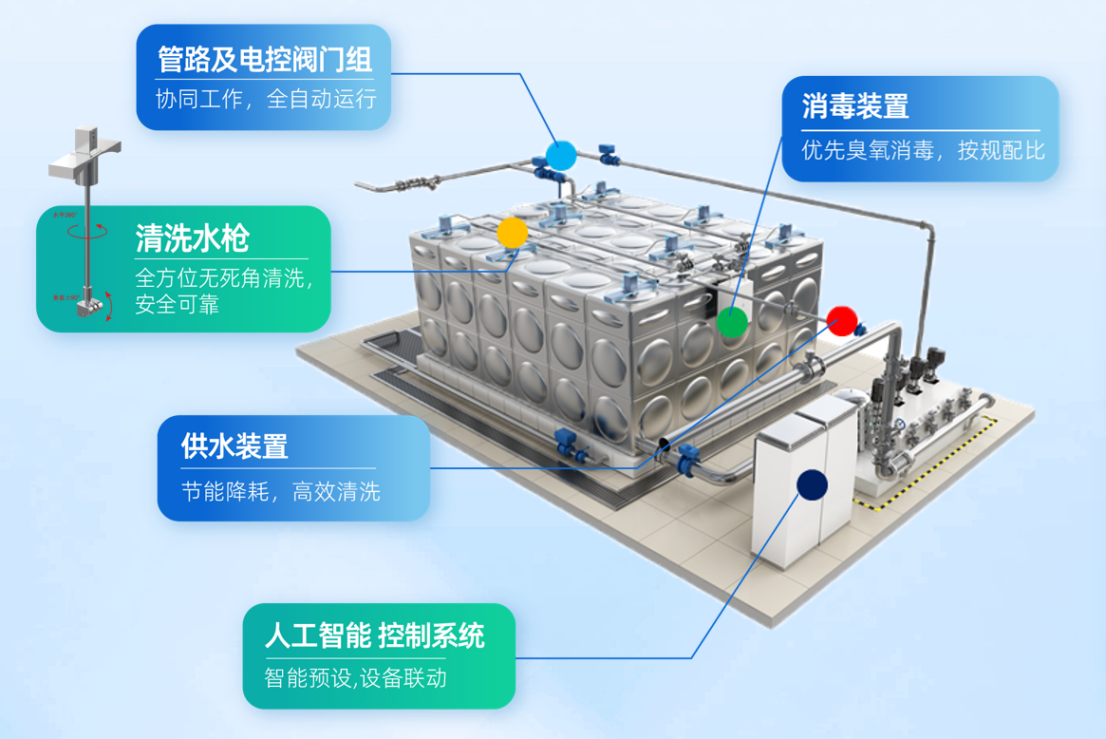 随着城市化浪潮持续推进,高层建筑二次供水设施已成为城市供水网络的核心节点,直接关系到千万家庭的用水安全。但在这一关键环节中,作为水质保障核心的水箱清洗工作,长期以来被传统人工模式的诸多弊端所困扰:不仅易引发二次污染,作业过程中还存在安全风险,且必须停水操作导致居民用水不便,清洗效果更是缺乏有效监控手段。这些痛点交织叠加,成为城市供水安全管理中亟待突破的"最后一公里"瓶颈。